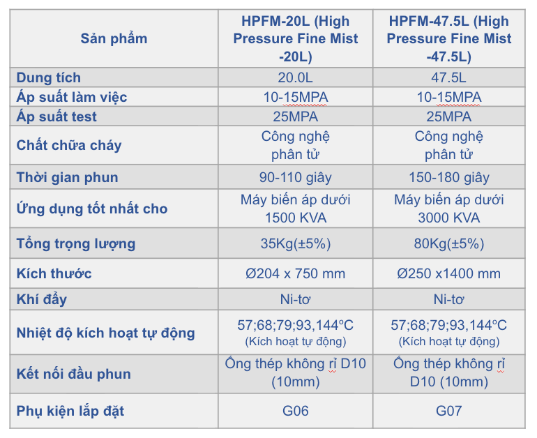 Sản phẩm đặc biệt phù hợp cho giảm nhiệt và tự động chữa cháy cho Máy Biến Áp, phòng máy bơm, tủ điện có nguy cơ cháy cao, trạm BTS viễn thông …